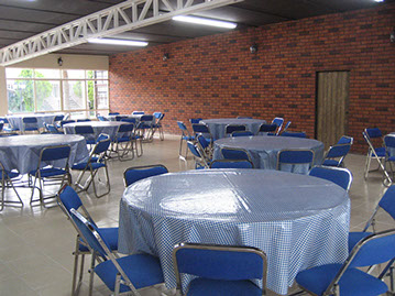 Comedor para 200 personas a tu disposición con todos los servicios que necesitas.